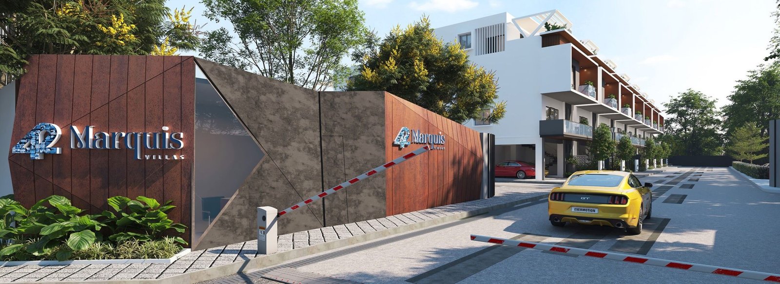 42 Marquis is a premium villa development by 42 Estates, strategically located off Sarjapur Road in Electronic City, Bangalore. Spread across 3.5 acres, the project offers 55 exclusive 4 BHK villas with spacious layouts ranging from 2444 to 3575 sq ft. Launched in June 2022, the project is scheduled for possession by December 2025 and is registered under RERA ID PRM/KA/RERA/1251/308/PR/220722/005095. Developed by 42 Estates—a global real estate firm known for its luxury and sustainability-focused residential and commercial projects across the US, Dubai, and India—42 Marquis is designed to offer refined living in a well-connected location. The project features high-end villas set amidst beautifully landscaped surroundings and comes with top-notch amenities, including a clubhouse with a multipurpose hall, gym, and squash court, a swimming pool, children’s play area, and round-the-clock security. With proximity to IT parks, reputed schools, hospitals, and shopping centers, it ensures both comfort and convenience for modern families.