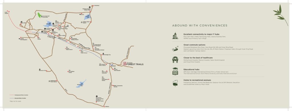 Arvind Forest Trails is a nature-inspired residential project located on Sarjapur Road, Bangalore, offering spacious 5 BHK row house villas designed to blend luxury living with eco-conscious design. Set amidst lush greenery, the project features a 1.2 km forest trail, landscaped gardens, and natural rock waterfalls, creating a peaceful environment. Smart home features such as Alexa-enabled switches, biometric door locks, and app-based controls enhance daily living, while future-ready amenities include EV charging stations and a modern clubhouse. Sustainability is a core focus, with provisions like LED streetlights, water metering systems, and a sewage treatment plant. Spread across vast green spaces, Arvind Forest Trails boasts over 60 lifestyle amenities, including a swimming pool, sports courts, party lawns, cricket pitch, gazebo, and business center. With RERA approval, 24/7 security, and excellent connectivity to IT hubs, metro lines, schools, and hospitals, the project promises long-term value. Possession is expected by June 2029, making it a promising investment for those seeking a luxurious and environmentally conscious home.