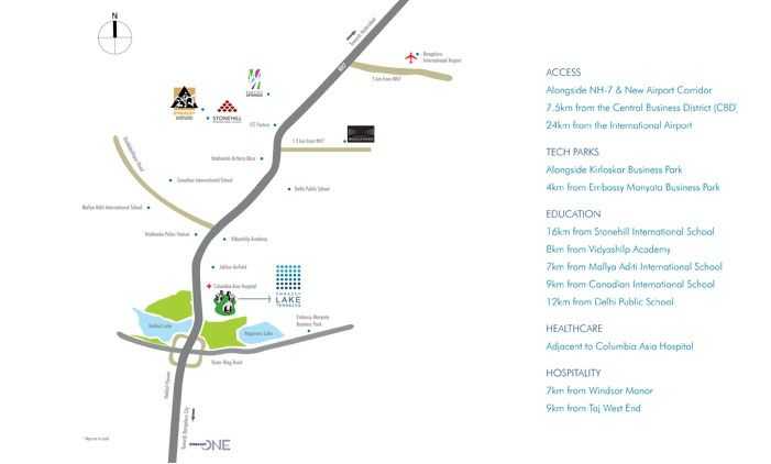 Located in Hebbal, close to lakes, international airport, IT hubs, and healthcare/education centres.