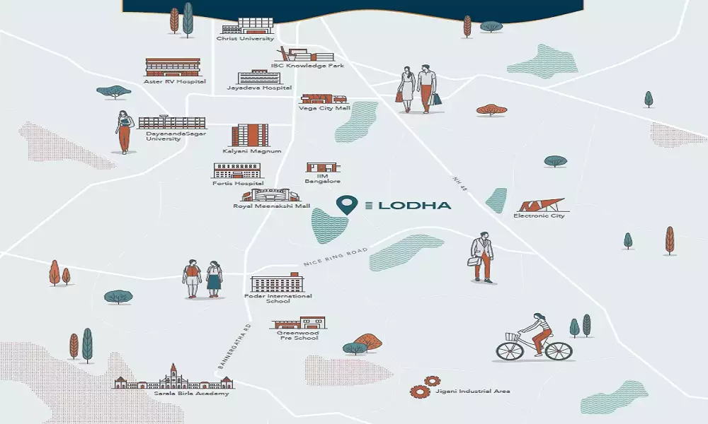 Strategically positioned in the heart of Akshayanagar, Lodha Azur offers excellent connectivity to all key areas of South Bangalore. It enjoys close proximity to major hubs such as Hulimavu, Arekere, Hodur Road, NICE Junction, Meenakshi Mall, JP Nagar, and more, ensuring ease of access to schools, hospitals, workplaces, and entertainment zones.