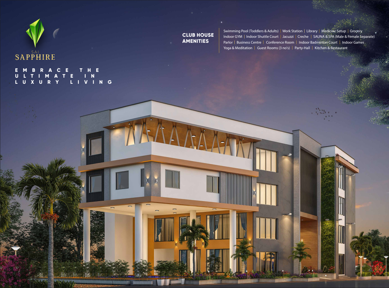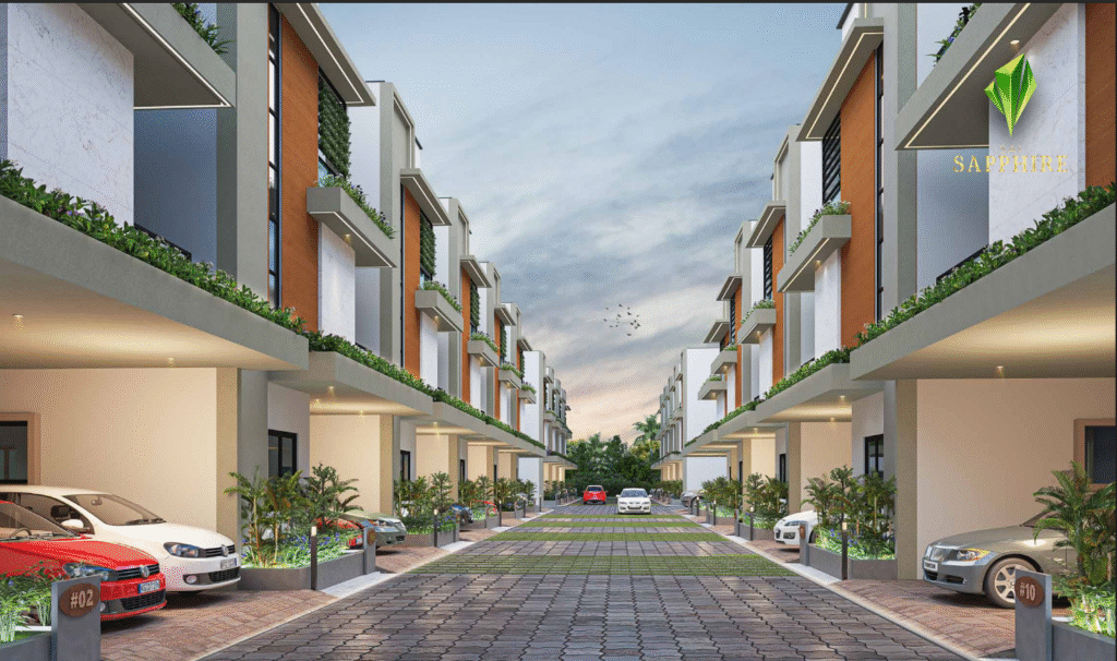 Sapphire by 42 Estates is an exclusive luxury villa development located in Whitefield, Sadarmangala, Bangalore, designed to offer a harmonious blend of luxury, nature, and modern living. Developed by 42 Estates, a reputed Bangalore-based real estate company known for its professionalism, innovation, and premium residential projects, Sapphire is envisioned as a tranquil retreat within the city. With 70% of the property dedicated to open spaces, the community features thoughtfully designed landscapes including a Zen garden, meditation pavilion, pet parks, and forest trails, ensuring residents enjoy both serenity and connectivity.
