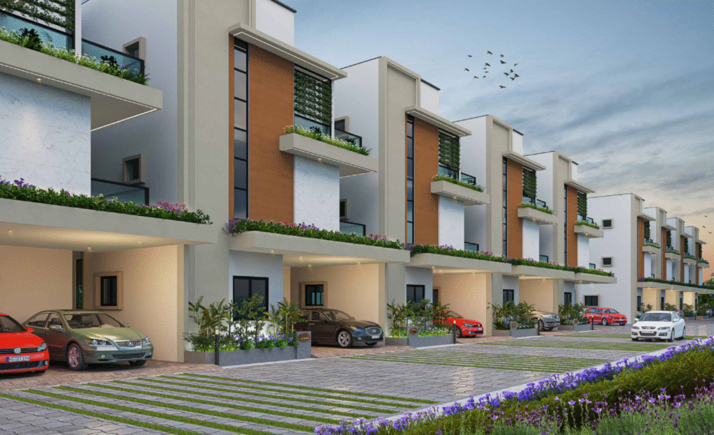 The project comprises spacious 4BHK villas ranging from 3,500 to 5,000 sq. ft., each crafted with contemporary architectural elegance, expansive windows that invite abundant natural light, and high-end finishes that exude sophistication. These design elements create a refined ambiance, offering both comfort and exclusivity.
