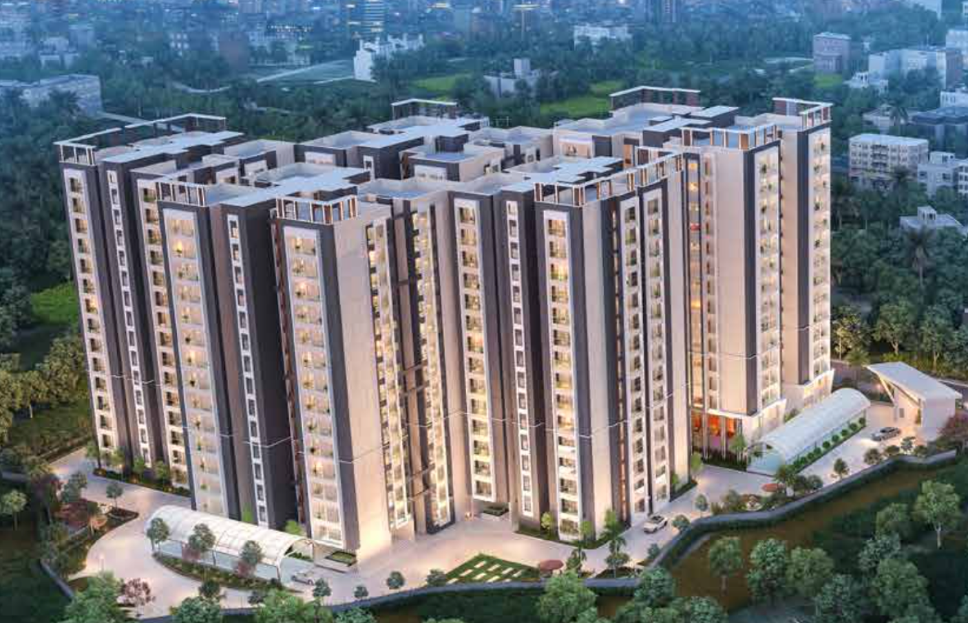 Spread across 2.49 acres, Shuvam Avenue features 5 residential towers with 14 floors each, comprising around 288 thoughtfully designed units. Residents will enjoy a well-rounded lifestyle with amenities such as a gymnasium, children’s play area, and a banquet hall. The project is strategically located near key landmarks like AMRI Hospital and offers convenient access to transit points like Sarkantra Railway Station.