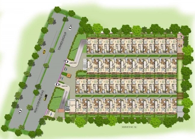 Total Environment After the Rain is a luxury villa community located on Sir MVIT College Road in Yelahanka, Bangalore, close to Hebbal and the international airport. Developed by Total Environment Building Systems, the project features earth-sheltered homes with green roofs and L-shaped designs that open into private courtyards, blending modern living with nature. Focused on sustainability, the project includes rainwater harvesting, a sewage treatment plant, and energy-efficient design. Villas are available in 4 and 5 BHK configurations, ranging from 3,184 to 5,120 sq ft. Amenities include a clubhouse, gym, swimming pool, landscaped gardens, outdoor sports courts, children’s play areas, a party hall, and 24/7 security. Spread across multiple phases, the development includes 96 homes in Phase 1, 86 in Phase 2A, and 37 in Phase 2B. RERA registered under PRM/KA/RERA/1251/309/PR/171014/000483, After the Rain offers a refined, eco-conscious lifestyle in a serene, well-connected location.