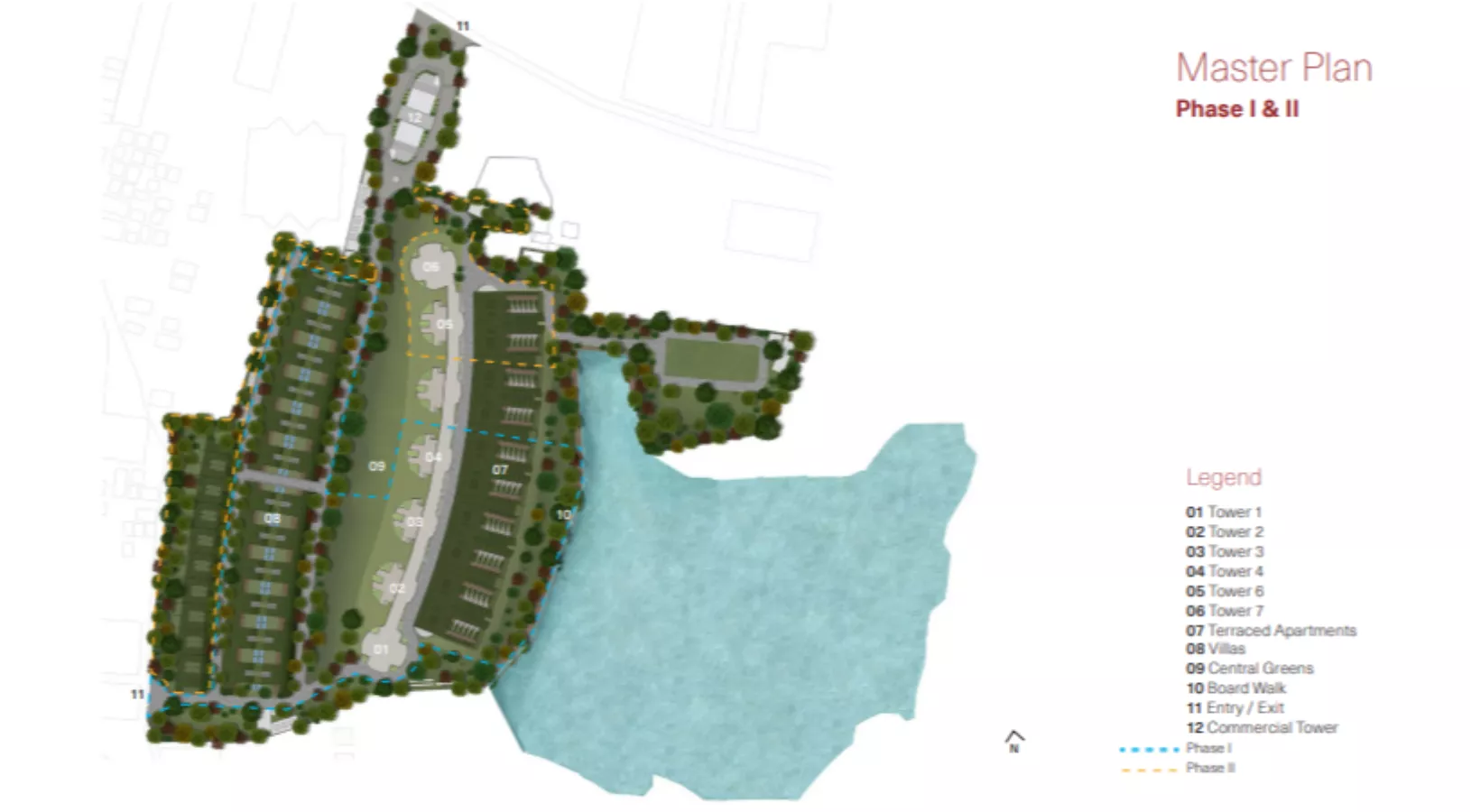 Pursuit of a Radical Rhapsody by Total Environment is a luxury mixed-use residential project located in Whitefield, Bangalore—India’s Silicon Valley. Spread across 34.5 acres, it features a blend of apartments, villas, and a “Workcations” commercial tower, designed with a strong focus on nature integration and unique architecture. The development includes earth-sheltered roofs, gardens on every terrace—even on the 27th floor—and lake-facing units. Villas are spacious 4-bedroom homes of 4,686 sq ft, while apartments range from 2,753 to 8,023 sq ft in 2 to 5 BHK configurations. Amenities include a library café, multiple swimming pools, squash courts, a boardwalk, central greens, and a walking track along the lake. Green features like solar rooftops, rainwater harvesting, and energy-efficient systems further enhance sustainability. The project is designed to offer a luxurious yet eco-conscious lifestyle, combining natural beauty with thoughtful, modern living spaces.
