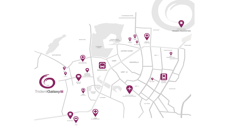Trident Galaxy III by Trident Properties is a premium residential development in Kalinga Nagar, Bhubaneswar, offering thoughtfully designed 3 BHK apartments that blend luxury, comfort, and functionality. Spread across 13 acres with nearly 70% open space, the project emphasizes greenery, natural light, and ventilation, thanks to its unique three-side open apartment layouts with spacious decks overlooking lush surroundings.