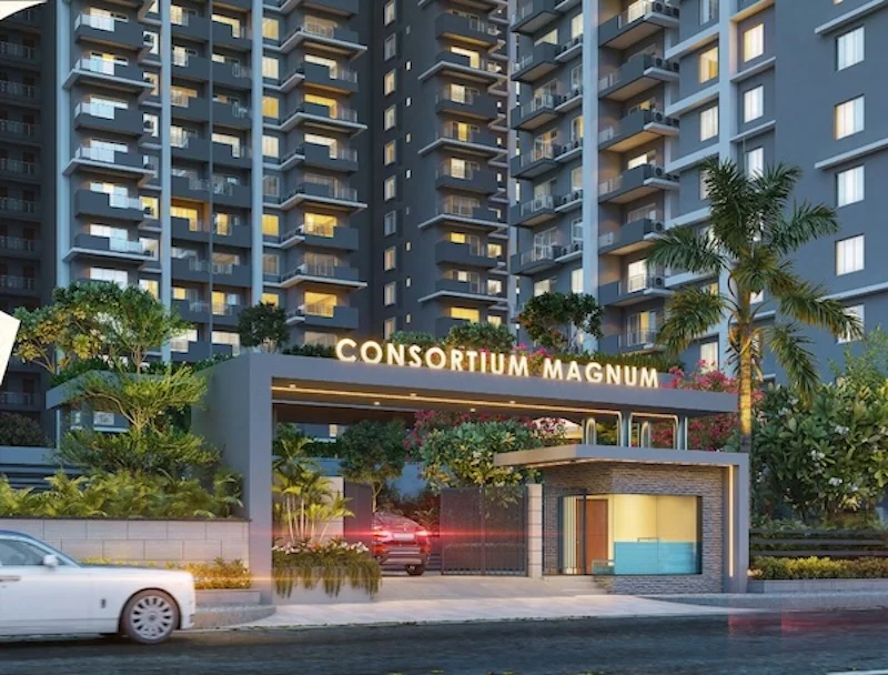 The development features multi-story towers, some rising up to 31 floors, with a variety of apartment configurations including 2, 3, 3.5, and 4.5 BHK units. With a total of 410 units, Consortium Magnum is a large-scale project equipped with thoughtfully designed amenities such as spacious clubhouses, swimming pools, and landscaped green spaces, enhancing the overall lifestyle of its residents.